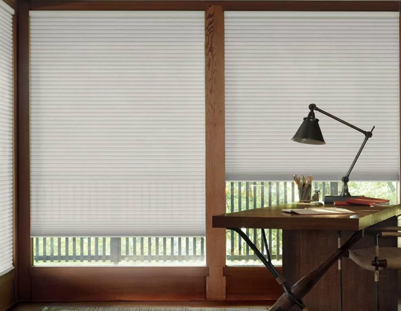 Since we use our kitchens at different times of the day and for different activities, kitchen shades need to be flexible and responsive regarding light control. Duette® Cellular Shades with Duolite® have a front, light-filtering shade and a back, room-darkening shade, so the treatment can create a wide spectrum of interior lighting from full, bright light to blackout darkness, which can prove useful in a busy kitchen area.